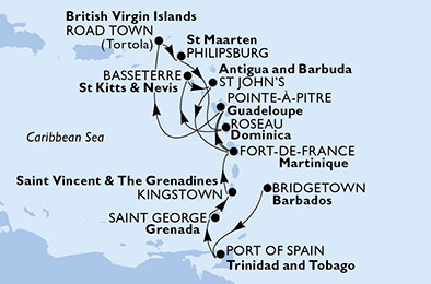 Barbados • Trinidad • Grenada • St. Vincent • Martinique • Guadeloupe • British Virgin Islands • St. Maarten • Dominica • St. Kitts • Antigua